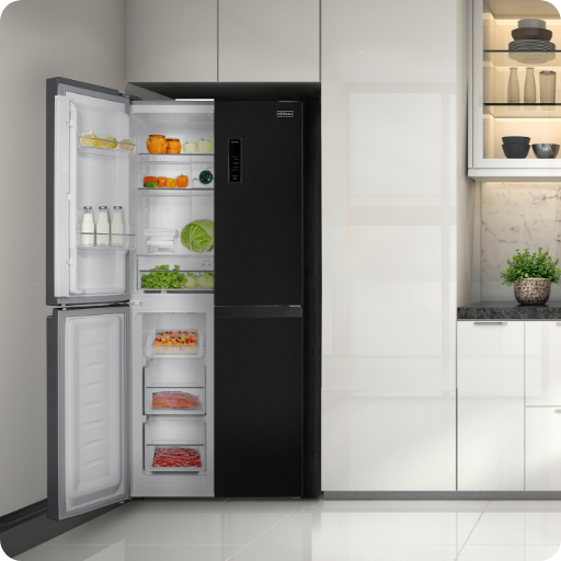 Wnętrze lodówki jest zaprojektowane z myślą o maksymalnej organizacji. Dzięki trzem przestronnym półkom i czterem balkonikom, łatwo przechowasz większe garnki, napoje oraz drobne przekąski. Wszystko masz pod ręką, co ułatwi Twoje codzienne gotowanie!