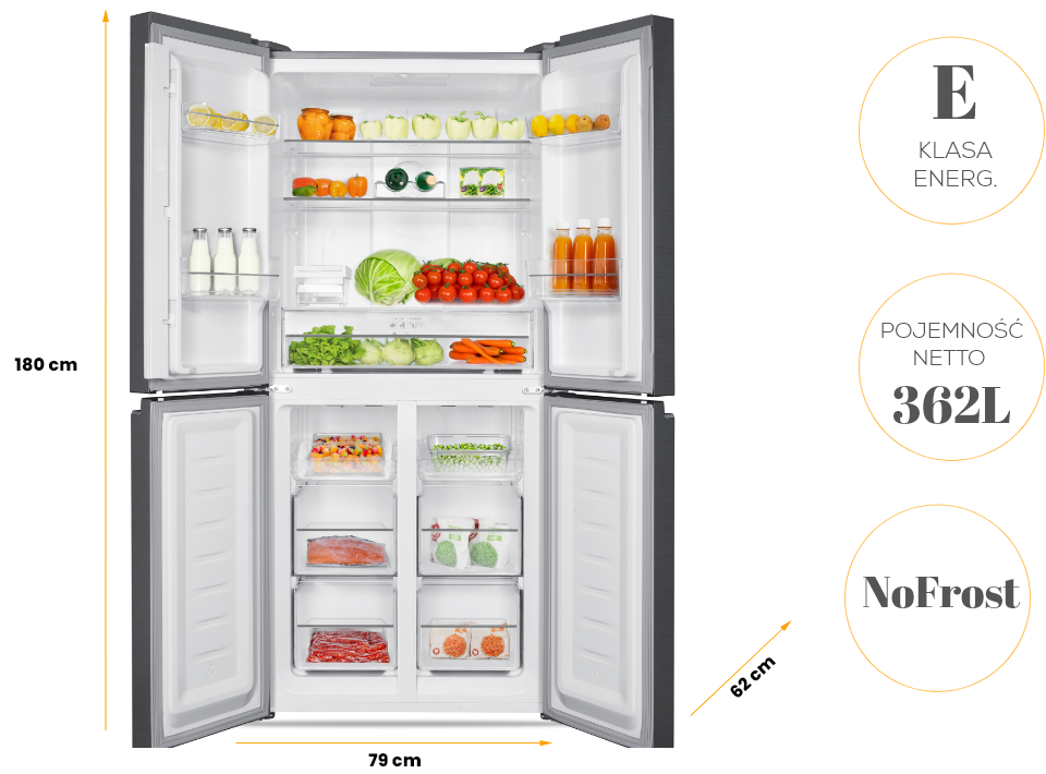 Dzięki imponującej pojemności 362 litrów, lodówka ta pomieści wszystkie Twoje ulubione produkty, od świeżych owoców po zamrożone dania. Idealna dla rodzin, które często robią zakupy!