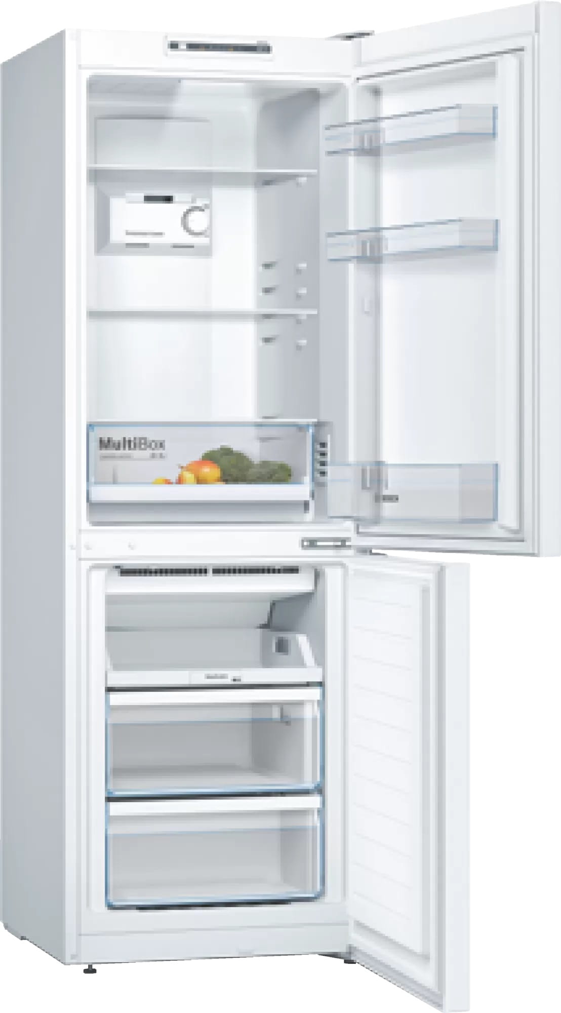 Nierównomierne chłodzenie może mieć znaczny wpływ na smak i trwałość przechowywanych produktów. Nasz system MultiAirflow, wspomagany wentylatorem, zapewnia delikatne, równomierne rozprowadzenie zimnego powietrza na wszystkich poziomach, w strefach schładzania i zamrażania. Minimalizuje to wahania temperatury i skraca czas chłodzenia — dzięki czemu Twoja żywność zachowa świeżość na dłużej. Ciesz się świeżością przez cały czas.