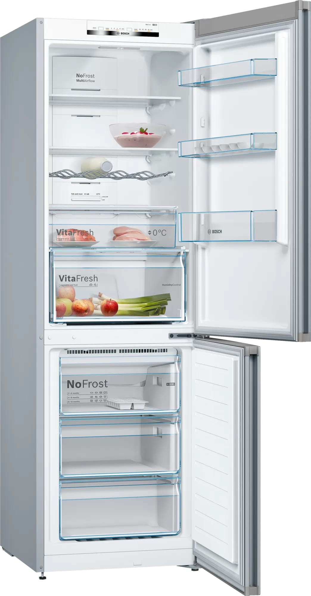 Nierównomierne chłodzenie może mieć znaczny wpływ na smak i trwałość przechowywanych produktów. Nasz system MultiAirflow, wspomagany wentylatorem, zapewnia delikatne, równomierne rozprowadzenie zimnego powietrza na wszystkich poziomach, w strefach schładzania i zamrażania. Minimalizuje to wahania temperatury i skraca czas chłodzenia — dzięki czemu Twoja żywność zachowa świeżość na dłużej. Ciesz się świeżością przez cały czas.