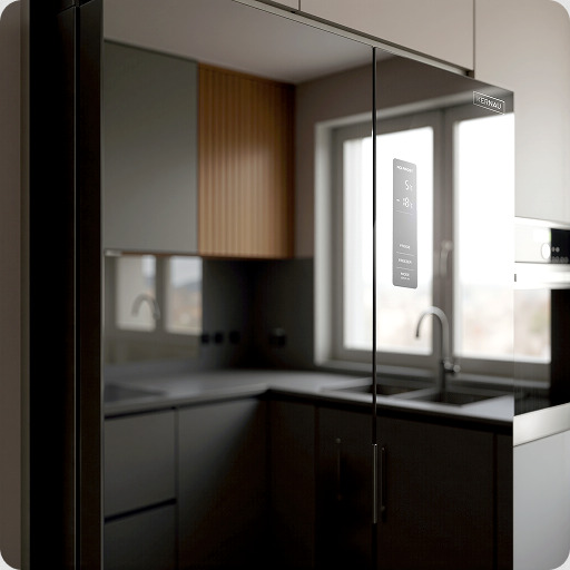 Front z eleganckiego czarnego szkła nadaje lodówce nowoczesny, wyrafinowany wygląd, który doskonale wpisuje się w stylowe, minimalistyczne kuchnie. Gładka, nieporowata powierzchnia nie tylko przyciąga wzrok, ale też ułatwia codzienne użytkowanie – wystarczy przetrzeć ją wilgotną ściereczką, by usunąć odciski palców czy smugi. Szkło jest odporne na zarysowania i łatwe do utrzymania w czystości, co gwarantuje nienaganną estetykę przez długie lata.