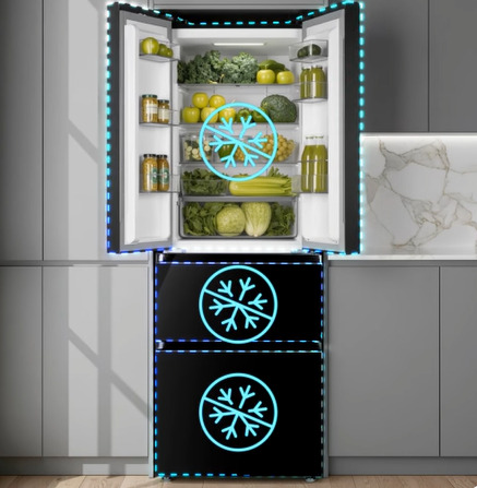 Specjalna szuflada w chłodziarce utrzymuje optymalną temperaturę i wilgotność, dzięki czemu przechowywane mięso, ryby, owoce i warzywa dłużej zachowują świeżość. To idealne miejsce na produkty wymagające szczególnych warunków chłodzenia.