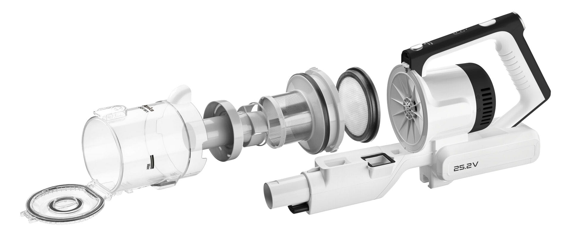Wymienialna bateria litowo-jonowa o mocy 21,6 V pozwoli Ci na wygodne sprzątanie bez konieczności podłączania odkurzacza do kontaktu. Zasilanie akumulatorowe zapewni dotarcie do miejsc do których dostęp wcześniej ograniczał kabel takich jak samochód, schody czy nawet sufit! Odkurzacz można ładować w całym domu dzięki dołączonej ładowarce.