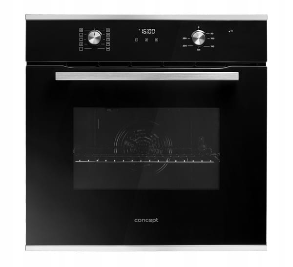 Nowoczesny design podkreśla eleganckie czarne szkło uzupełnione drobnymi elementami ze stali nierdzewnej. Piekarnik ETV5760M idealnie pasuje do każdej kuchni. Łatwo go połączyć z innymi urządzeniami marki Concpet, aby uzyskać idealnie skoordynowaną kuchnię.