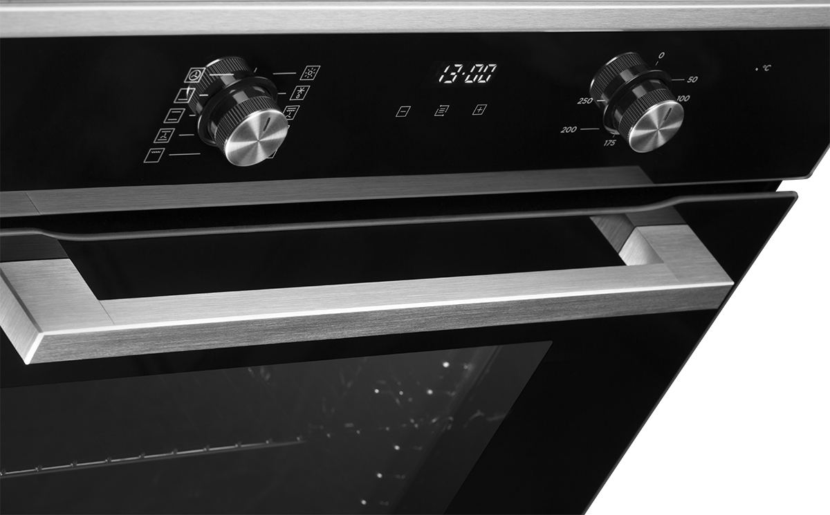 Piekarnik jest wyposażony w wentylator chłodzący, który automatycznie uruchamia się po włączeniu urządzenia i zapobiega jego przegrzaniu. Drzwi składają się z potrójnego szkła, dzięki czemu nie poparzysz się podczas pieczenia w kontakcie z zewnętrzną częścią drzwi. Szybę można łatwo wyjąć za pomocą zwalniając specjalne blokady bez konieczności wyjmowania całych drzwi.