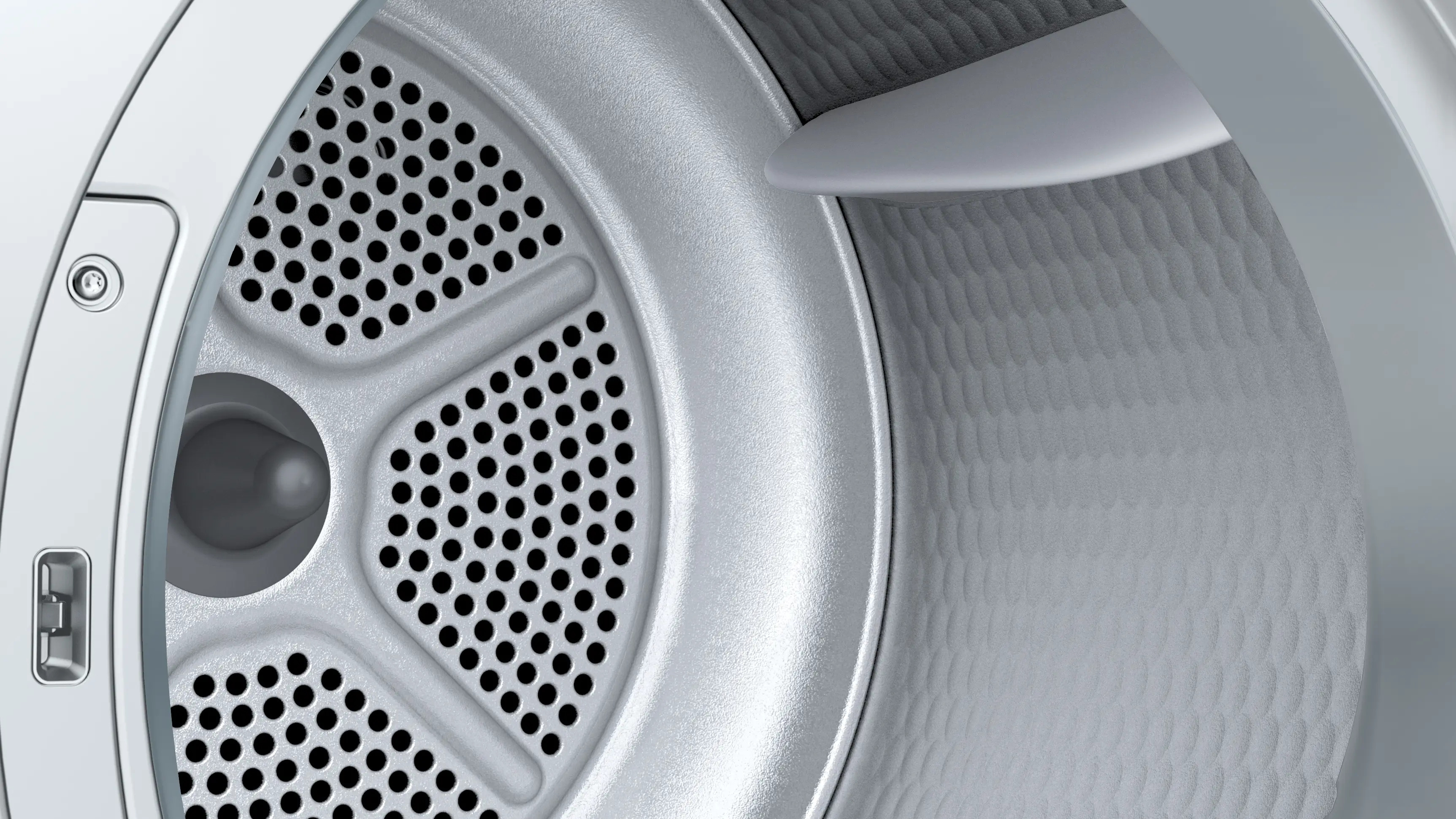 Innowacyjne ściany boczne AntiVibration zostały specjalnie zaprojektowane, aby zapewnić większą stabilność i optymalnie zredukować wibracje.Ulepszona izolacja reguluje również poziom hałasu, dzięki czemu suszarki Bosch są wygodne i ciche, nawet podczas niezakłóconego snu.