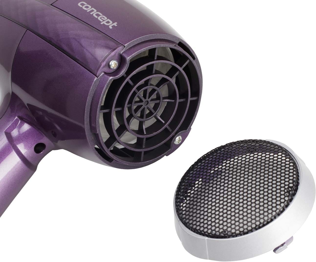 Suszarka do włosów jest wyposażona w wyjmowaną kratkę wlotu powietrza, dzięki czemu czyszczenie jest kwestią chwili. Po prostu zdejmij kratkę, wyczyść ją szczotką lub spłucz wodą, wysusz i włóż z powrotem.