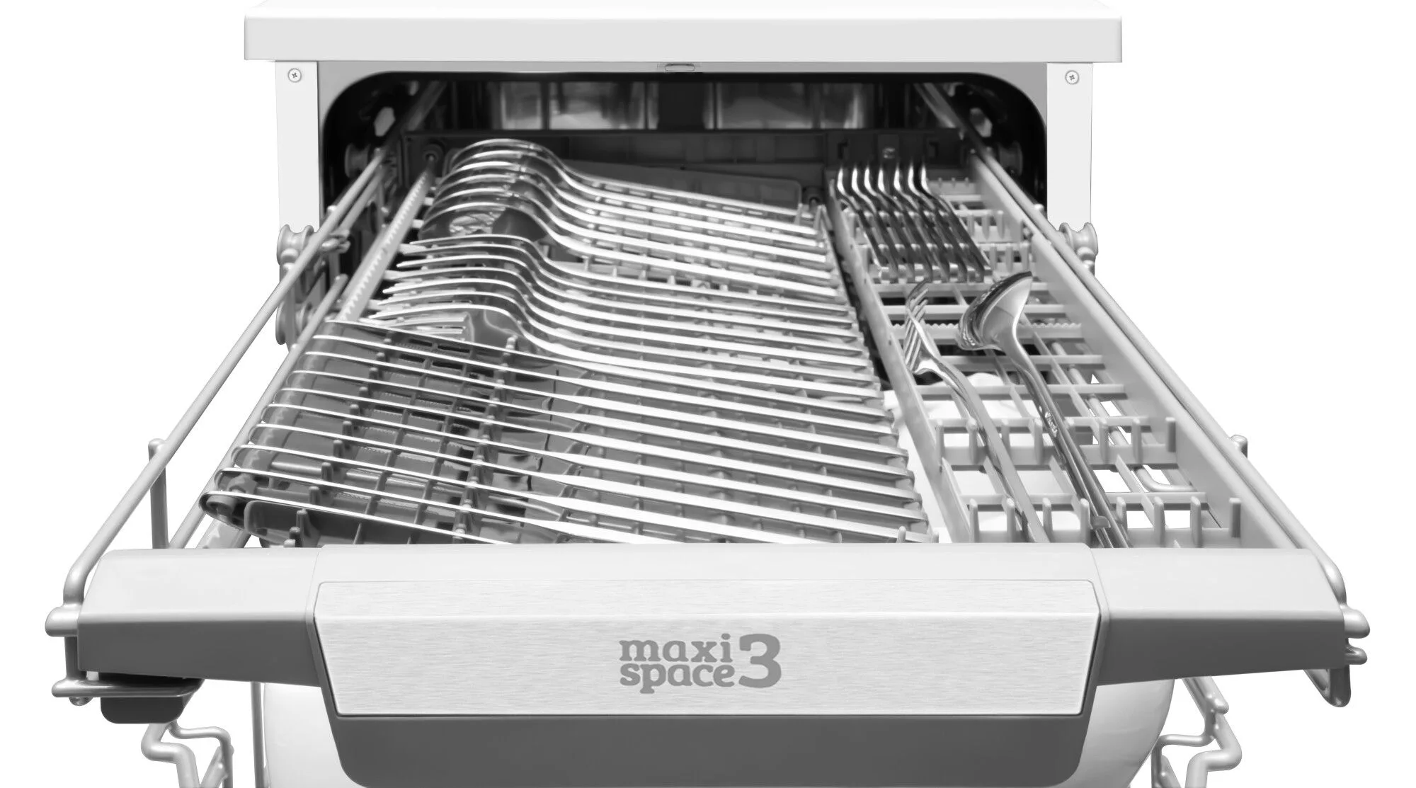 Trzeci kosz przeznaczony na sztućce z regulowaną powierzchnią zwiększa przestrzeń użytkową zmywarki
