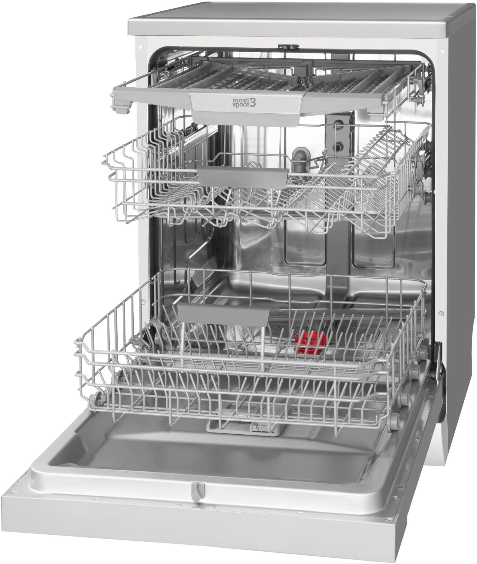 Trzeci, niezależny kosz ze specjalnymi przegródkami na sztućce, umieszczony w górnej części komory zapewnia dużą ergonomię użytkowania — już nie musisz się schylać, wyciągając sztućce. Zmywarka jest też bardziej pojemna, bo nie tracisz miejsca na pojemnik na sztućce w dolnym koszu, dzięki czemu możesz włożyć jeszcze więcej naczyń, a więcej naczyń = większe oszczędności.